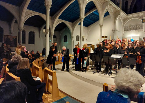 Ce concert « Nous l’Europe » organisé, dans le cadre du partenariat AMOPA Paris Ouest -AMOPA Allemagne du Sud, par Sylviane Murguet et Mireille Schmich trouva un vif succès et nombreux sont les spectateurs venus applaudir le trois ensembles de musiciens si différents les uns des autres: Le Choeur Sorbonne Université qui se produit à l’international avec son brillantissime Chef Frédéric Pïneau, l’ensemble du Lycée M.J.S.de Munich ,dirigé par la célèbre compositrice Mona Rasenberger , enfin l’ensemble des prodiges d’Avignon sous la baguette d’ Odile Sick-Plantevin