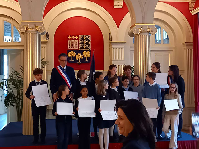 Remise de diplômes aux participants concours AMOPA 2024 le 18 mars 2025 par Mr le Maire du XVIème avec moment musical et Conférence Me VAN der MOTTE.